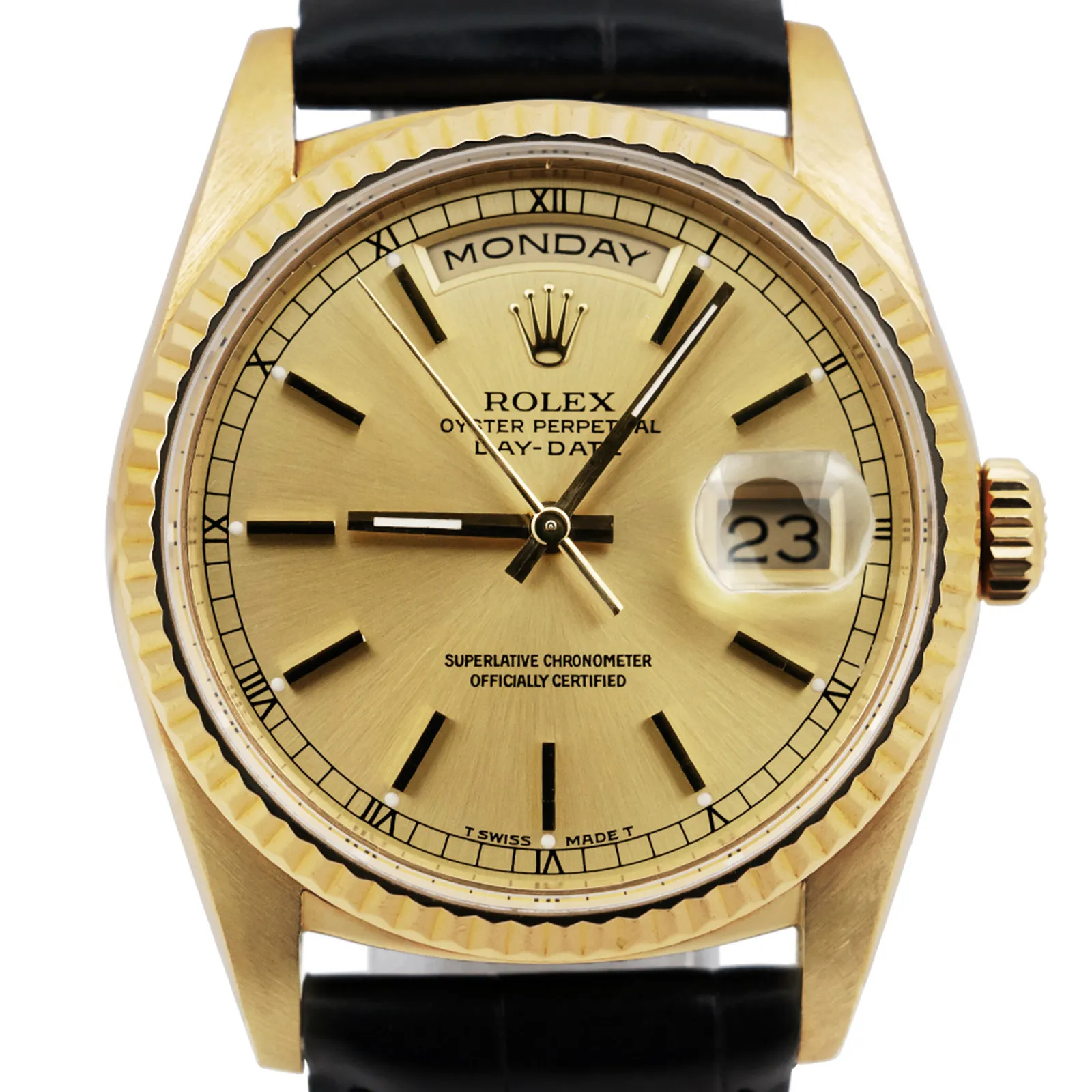Rolex Day-Date 18238 36mm 18ct Yellow Gold Champagne Baton Dial - 1996
